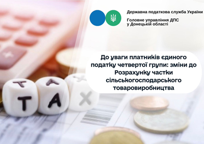 Шановні платники! Головне управління ДПС у Донецькій області інформує, що Державною податковою службою України листом від 09.02.2024 № 3512/7/99-00-04-03-03-07 надано роз’яснення щодо адміністрування платників єдиного податку четвертої групи.