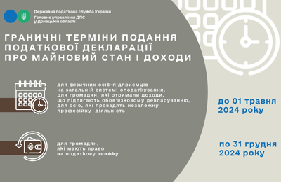 Головне управління ДПС у Донецькій області нагадує про строки подання громадянами податкової декларації.