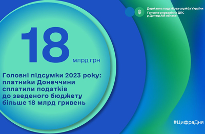 За результатами роботи Головного управління ДПС у Донецькій області за 2023 рік до зведеного бюджету країни від сплати податків, зборів та інших обов`язкових платежів надійшло 18,3 млрд гривень.