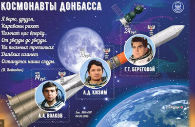 Ко Дню космонавтики т. н. «Почта Донбасса» ввела в обращение серию марок в честь 55-летия со дня первого полета в космос Юрия Гагарина. Серия называется «Космонавты Донбасса».«12 апреля государственное...