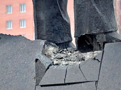 Сегодня в Донецке в 4 часа утра по местному времени неизвестные пытались взорвать памятник Ленину.Повреждения не слишком серьезные. Отсекло левый задний угол постамента, также имеется выбоина под правой ногой...