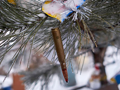 Поселок Пески расположен очень близко от оккупированного Донецка. После ожесточенных боев здесь все в руинах.Однако украинские защитники даже в таких условиях отпраздновали Рождество.Фото: Getty Images