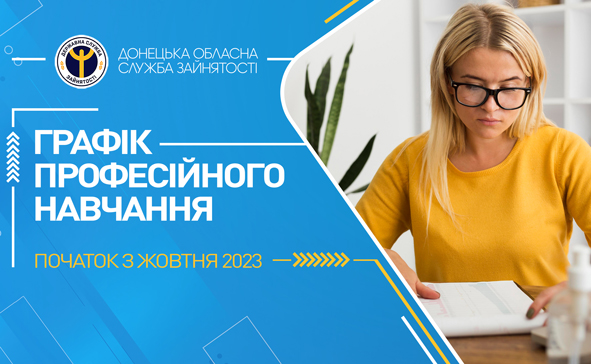 Донецький обласний центр зайнятості інформує про орієнтовний графік на жовтень 2023 року, за яким планується навчання безробітних у центрах професійно-технічної освіти Державної служби зайнятості.