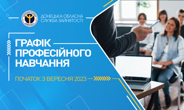 Донецький обласний центр зайнятості інформує про орієнтовний графік на вересень 2023 року, за яким планується навчання безробітних у центрах професійно-технічної освіти Державної служби зайнятості.