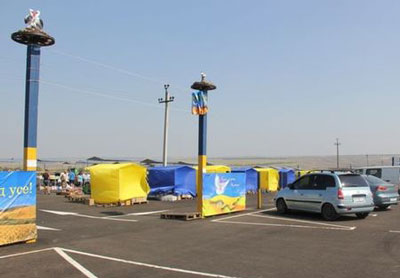 Логистический центр "Зайцево" не пользуется популярностью у жителей Донбасса." Людей, конечно, не очень много. Покупают, но не так, чтобы активно. У кого есть машины, те, конечно, едут в города...