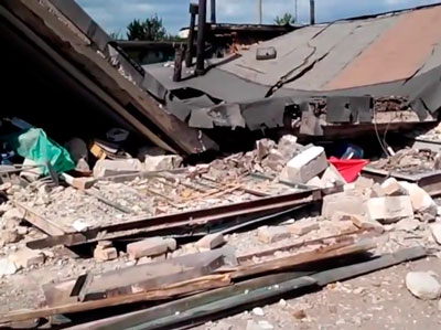 В соцсетях появились фото и видео с места происшествия.От одного из гаражей остались только развалины.