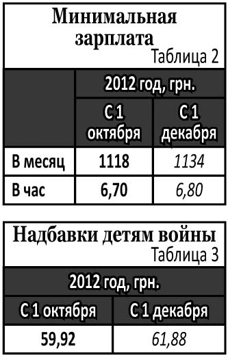 Что касается доплаты детям войны, то надбавка для них составляет 7% прожиточного минимума для нетрудоспособных лиц. С 1-го октября она будет равна 59,92 грн. (см. таблицу 3).