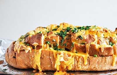 Горячий хлебушек, пропитанный чесночком и покрытый сыром — великолепная добавка к супу или основному блюду. Кроме того, такой хлеб, изначально нарезанный небольшими кусочками, отлично идет под футбольный матч! В семейном кругу...