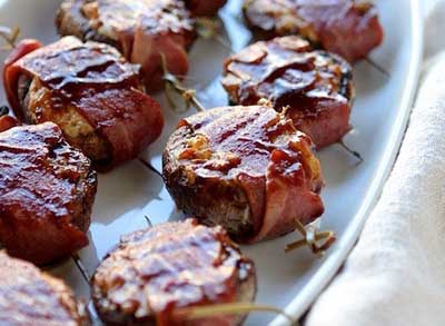 Фаршированные грибы — одна из лучших закусок: это вкусно, просто и быстро. В качестве начинки берем сыр, а для сытности и аромата заворачиваем фаршированные грибы в полоски бекона.Ингредиенты: