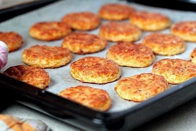 Ингредиенты:Творог — 200 гСахар — 1 ч. л.Соль — 1/3 ч. л.Яйца куриные — 2 шт.Мука – 1 стаканСода – 1 ч. л.Фарш...