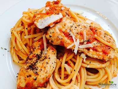 Любителям итальянской кухни посвящается! Сытный и очень вкусный ужин всего за полчаса! Вкуснейшие спагетти в томатном соусе с сочной и ароматной курицей!Ингредиенты:Куриное филе — 400 гПомидоры...