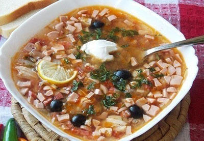 Он универсален. В него вы можете положить любые копчености, кусочки колбасы из холодильника, все на ваш вкус. Лучше, конечно, брать 3-4 вида копченостей. Также обязательно кладу в суп маслины и лимон,...