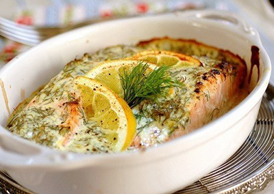 Ингредиенты:- стейк семги- соль, перец- сок 1 лимона- 2 ст.л. зелени- 1-2 дольки лимона- 1 ст.л. майонеза- 1 зубчик чеснока, мелко натертыйПриготовление: