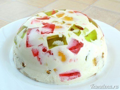 Желейный торт из сметаны с персиками, печеньем и цветным желе.Ингредиенты:500 г сметаны200 г консервированных персиков100 г печенья100 г сахара2 пакета разноцветных желе1 пакетик ванильного...