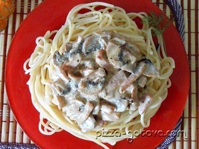 На 4 порции пасты потребуется:Ингредиенты:макароны спагетти – 500 г;грибы шампиньоны – 200-300 г;ветчина (ветчинная колбаса) – 200-300 г;лук – половинка или 1 небольшая луковица;сметана –...