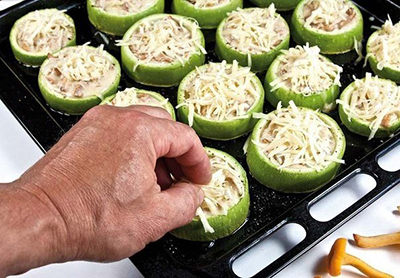 Ингредиенты:Кабачки – 4 шт.Сырок – 1-2 шт.Чеснок – 4 зубчика.Помидоры – 1 шт.Зелень и листья салатаСоль – по вкусуМайонезРастительное масло для жарки...