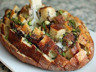 Нарезаем хлеб на квадратики, но не дорезаем до дна кирпичика, чтобы...