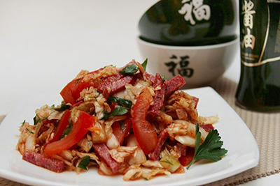 Ингредиенты:Капуста пекинская — 1 кочанКолбаса полукопченая — 150-200 гПомидор — 1 шт.Перец черный молотый — по вкусуПаприка — по вкусуСоль — по...
