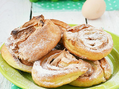 Яйца - 5 штМолоко - 200 грСоль - щепоткаМасло растительное - 4 ст.л.Дрожжи - 10 грМука - 500 гСметана (жирная) - 500 гВанилин -...