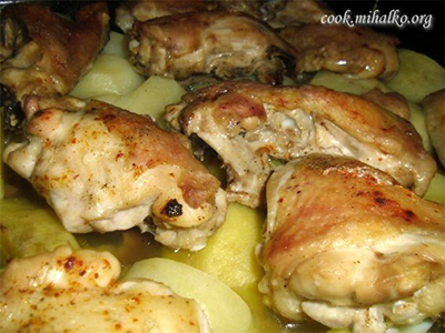 Ингредиенты:Куриные бедрышки – 6-8 шт.Картофель – 10-12 шт.Перец черный молотый – по вкусуСоль – по вкусуСмесь паприки и сушеного помидора – по вкусуПриготовление: