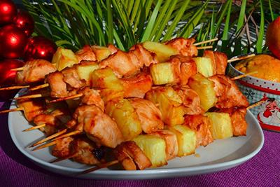 Ингредиенты:Грудки куриные — 2 шт.Ананас — 1 шт.Кетчуп — 100 млСоус соевый — 100 млСок апельсина — 1 шт.Корень имбиря — 5 смСахар...