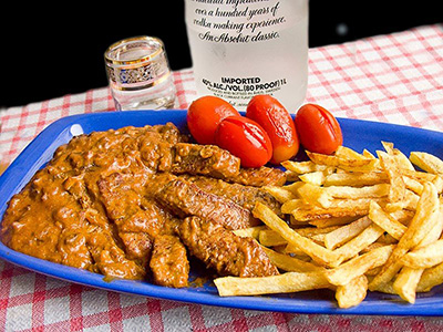 Ингредиенты:Говядина (вырезка) — 500 гМука — 2 ст. л.Масло топленое — 50 гБульон говяжий — 300 мл(или больше, в зависимости от желаемой густоты соуса)Пюре томатное...