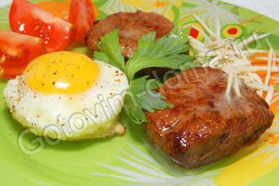 Составна 2 порцииговядина (утолщенная часть вырезки) - 300 г,масло сливочное - 30 г,яйца - 2 шт,зелень,соль,перецПриготовлениеМясо вымыть, обсушить и...
