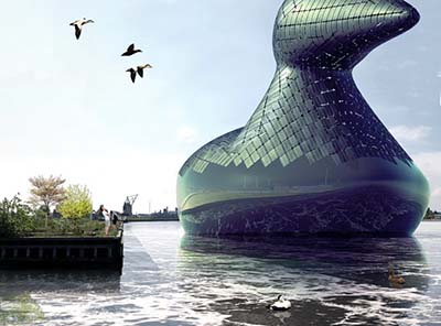 Группа британских художников обдумывает идею создания гигантской “солнечной” плавающей утки, которая сможет выполнять сразу несколько полезных функций. Это один из проектов, участвующих в конкурсе для дизайнеров “2014 Land Art...