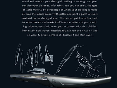 Представьте себе такую ручку, которая могла бы исправить что-либо из Вашей одежды, используя технологию 3D-печати. Предположим, разорванная часть получает совершенно новый напечатанный участок – латку – из той же...