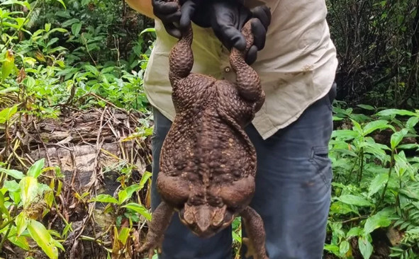У тропічному лісі на півночі Австралії знайшли гігантську очеретяну жабу. Фахівці спочатку сприйняли її за підробку через величезні розміри та масу.