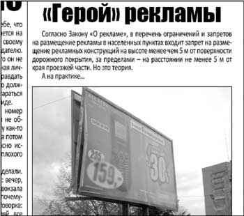 В № 47 «ТЕХНОПОЛИС» писал о большом реламном щите установленном на пересечении улиц Парковой и Юбилейной, который мешал движению авто- и электротранспорта