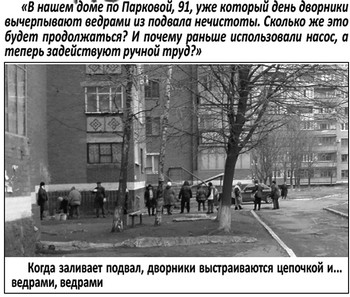 В № 49 «ТЕХНОПОЛИС» Подвалы краматорских «многоэтажек» – бомба замедленного действия писал о неудовлетворительном состоянии подвала в доме № 91 по ул. Парковой. В качестве иллюстрации была опубликована фотография, на которой рабочие ЧП «Балюс», выстроившись в цепочку, передают из рук в руки ведра с водой из залитого подвала. В №52 Вопрос – ответ наша газета продолжила эту тему. Корреспондент «ТЕХНОПОЛИСА» встретился с директором ЧП «Балюс» Константином Дмитренко. По его словам, проблема была в забитом наружном канализационном колодце. «Как только Водоканал прочистил колодец, мы стали откачивать все из подвала, – рассказывал Константин Юрьевич. – Пока уровень был выше – откачивали насосом. Но наступает момент, когда насос уже не берет – приходится задействовать ручной труд. Сегодня все убрано». Каково же было наше удивление, когда из УЖКХ пришло письмо следующего содержания: «Управление жилищного и коммунального хозяйства предоставляет ответ на обращение жильцов дома № 91 по улице Парковой, опубликованное 08.12.2010 г. в № 49 Вашей газеты под названием «Подвалы краматорских «многоэтажек»-бомба замедленного действия». При обследовании дома № 91 по улице Парковой было обнаружено, что в подвальном помещении нарушений технического состояния инженерных коммуникаций не имеется. Пол помещения сухой, за исключением входа в подвал, где наблюдается незначительное скопление талой воды (лужа), образующееся при сбегании атмосферных осадков со ступеней под входную дверь в подвал. Запаха зловония не выявлено. Следов разрушения стен жилого дома не обнаружено. Начальник УЖКХ Владимир Фальченко». Значит, никакой проблемы нет, и не было? Жильцам дома № 91 по ул. Парковой и директору «Балюса» что-то померещилось? «Незначительное скопление талой воды (лужу)» в преддверии новогодних праздников граждане приняли за море? |