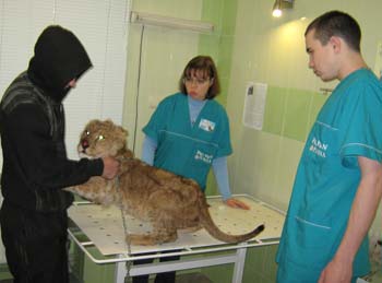 Когда «ТЕХНОПОЛИС» прибыл в клинику, экзотический пациент, темно-песочного цвета львенок, как раз был на процедурах. Когда процедура закончилась, мы побеседовали с доктором. – Львенок поступил к нам 15-го января, – рассказывает ветврач Елена Кузнецова, – у него было расстройство пищеварения. Очевидно, накормили чем-то не тем. Мы назначили зверенышу капельницу для интенсивной терапии, внутривенные инъекции и витамины.