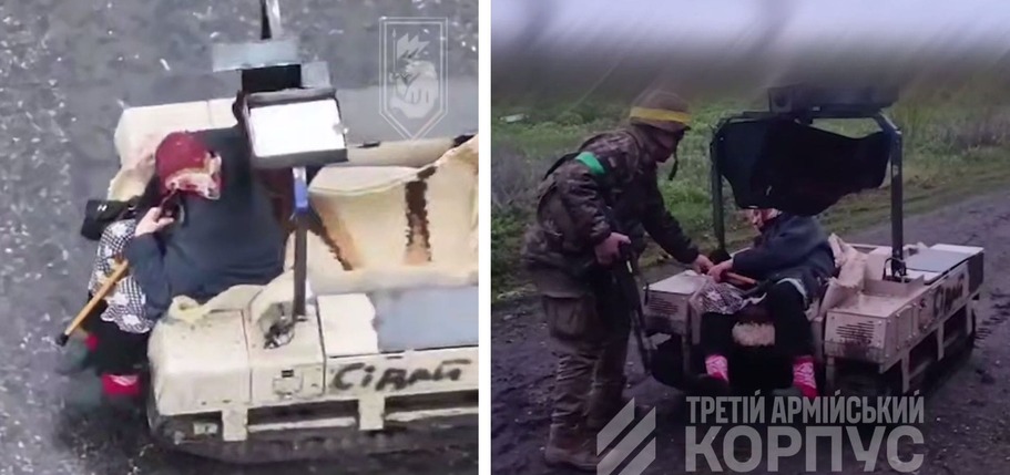 У селищі Ставки на Лиманщині пілоти 60-ї ОМБр виявили літню жінку, яка рухалася прострілюваною дорогою. Вона йшла крізь вирви від снарядів і тіла односельців — допоки за нею не прибув робот. "За її порятунок узялися бійці роти безпілотних наземних систем «Cerberus». Щоб не налякати жінку, наземний роботизований комплекс накрили ковдрою із посланням: «Бабуся, сідай!».