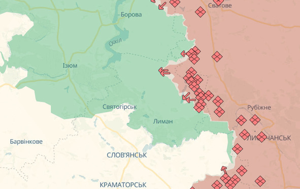 Проєкт DeepState повідомив, що російські війська знову просунулися вперед, розширивши так званий «Катеринівський виступ» у районі між Лиманом і Боровою.