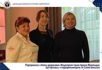 Під час робочої поїздки до міста Чернівці Віцепрем’єрка Ірина Верещук відвідала кафе «Ultra бабуся», власником якого є підприємиця зі Слов’янська Поліна Семенець.