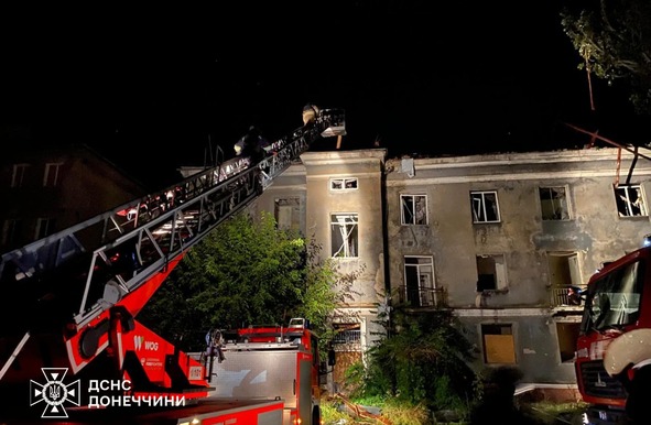 У Краматорську ворожий удар по місту спричинив масштабну пожежу в будівлі готелю. Вогнеборці ліквідували загоряння на площі 350 кв. м.