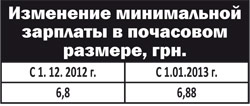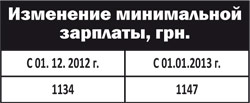 С 1-го января минимальная зарплата выросла с нынешних 1134 до 1147 грн. Второе повышение произойдет 1-го декабря 2013. Минимальная зарплата увеличится еще на 71 грн. и составит 1218 грн.