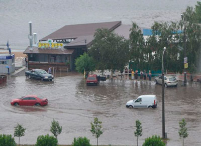 Сегодня, 26 июня, сильные дожди частично подтопили Набережную магистраль в районе Центрального пляжа в Запорожье.