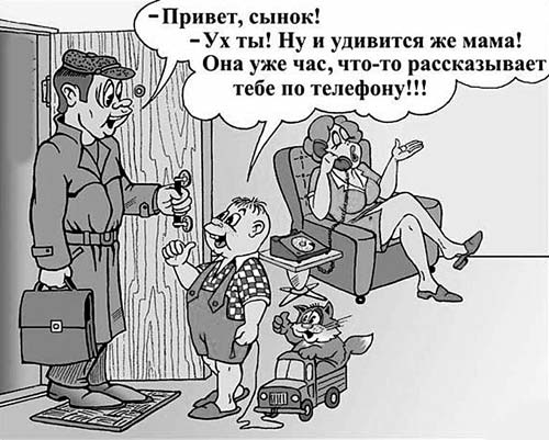 • Когда в беседе с подругой ваша жена повторяет: «... и мой тоже!..», вероятность того, что вас хвалят, практически равна нулю!