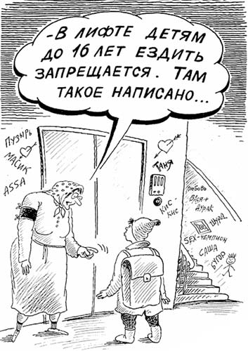 • Хватит ссать в лифте!! Есть же еще и лифт в соседнем подъезде, и лестничные пролеты.