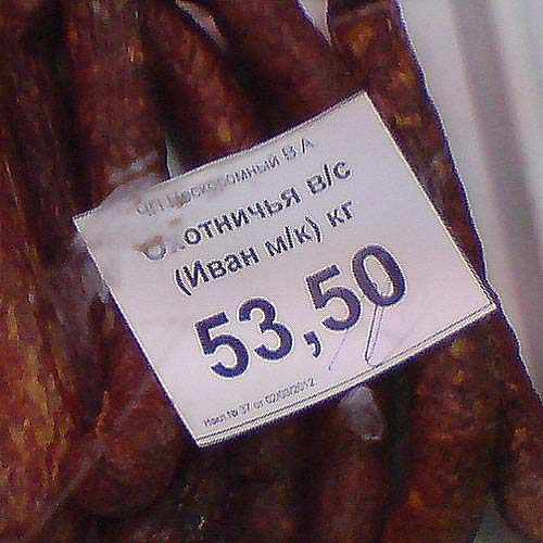 «Как-то мы зашли в один из краматорских магазинов, в колбасном отделе увидели следующие ценники, и вот, что из этого получилось: