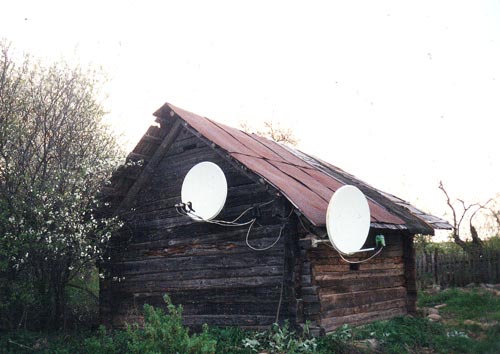 Во Вьетнаме спутниковую тарелку прикручивают к растущему бамбуку....