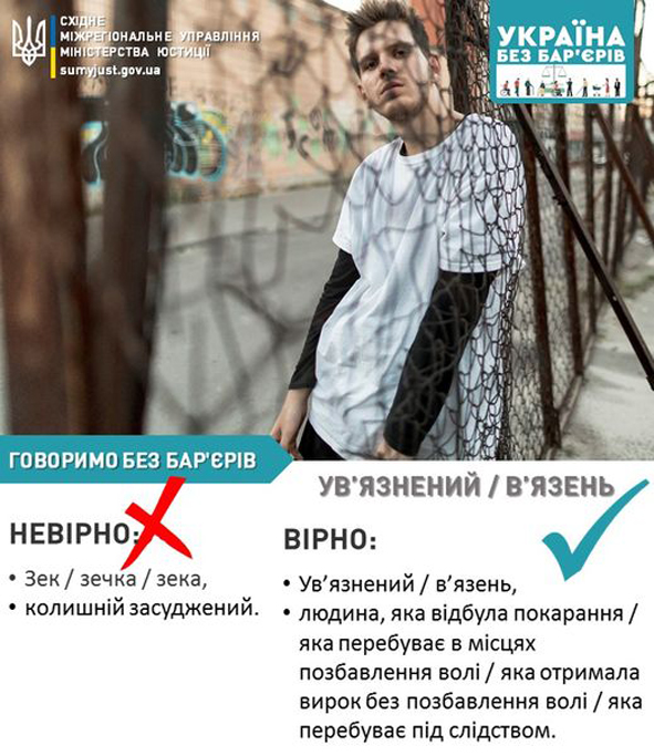 Східне міжрегіональне управління Міністерства юстиції інформує про безбар’єрне спілкування. Сьогодні мова про людину, яка перебуває чи перебувала в місцях позбавлення волі.