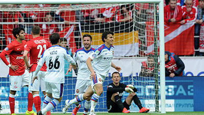 В московском дерби сильнее команда Леонида СлуцкогоШел к концу первый тайм. Заполненный до отказа армейский сектор на углу арены уже довольно распевал победные мотивы. А на остальных трибунах закипала злость....